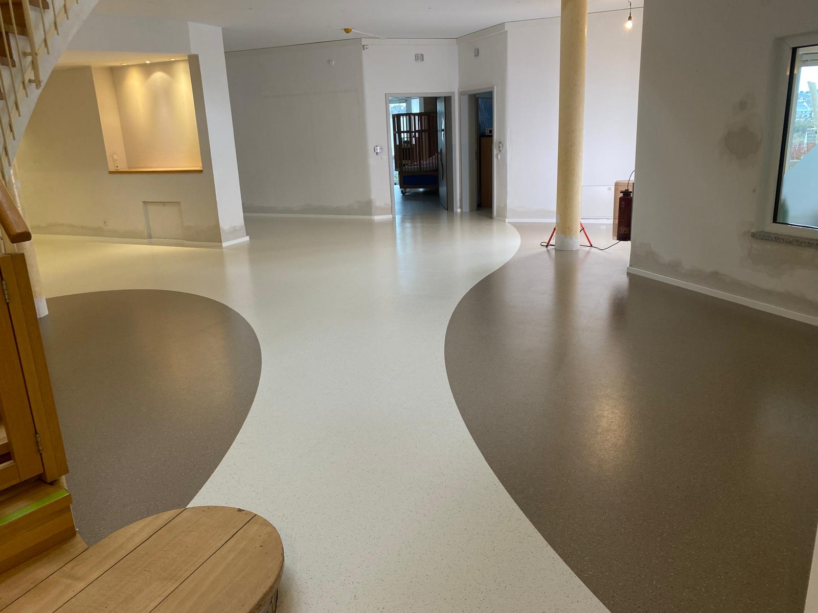 Im Kinderhospiz Balthasar in Olpe wurde im Rahmen eines sensiblen Innenausbau-Projekts auf rund 180 m² ein robuster, hygienischer und zugleich komfortabler Bodenbelag umgesetzt. Verlegt wurden großformatige Gummifliesen, die sich besonders für stark frequentierte Bereiche eignen und durch ihre rutschhemmenden sowie pflegeleichten Eigenschaften den Alltag in einer sozialen Einrichtung spürbar erleichtern. Das Ergebnis ist eine langlebige, funktionale und gleichzeitig ruhige Grundlage für Räume, in denen Sicherheit, Wohlbefinden und Verlässlichkeit an erster Stelle stehen.