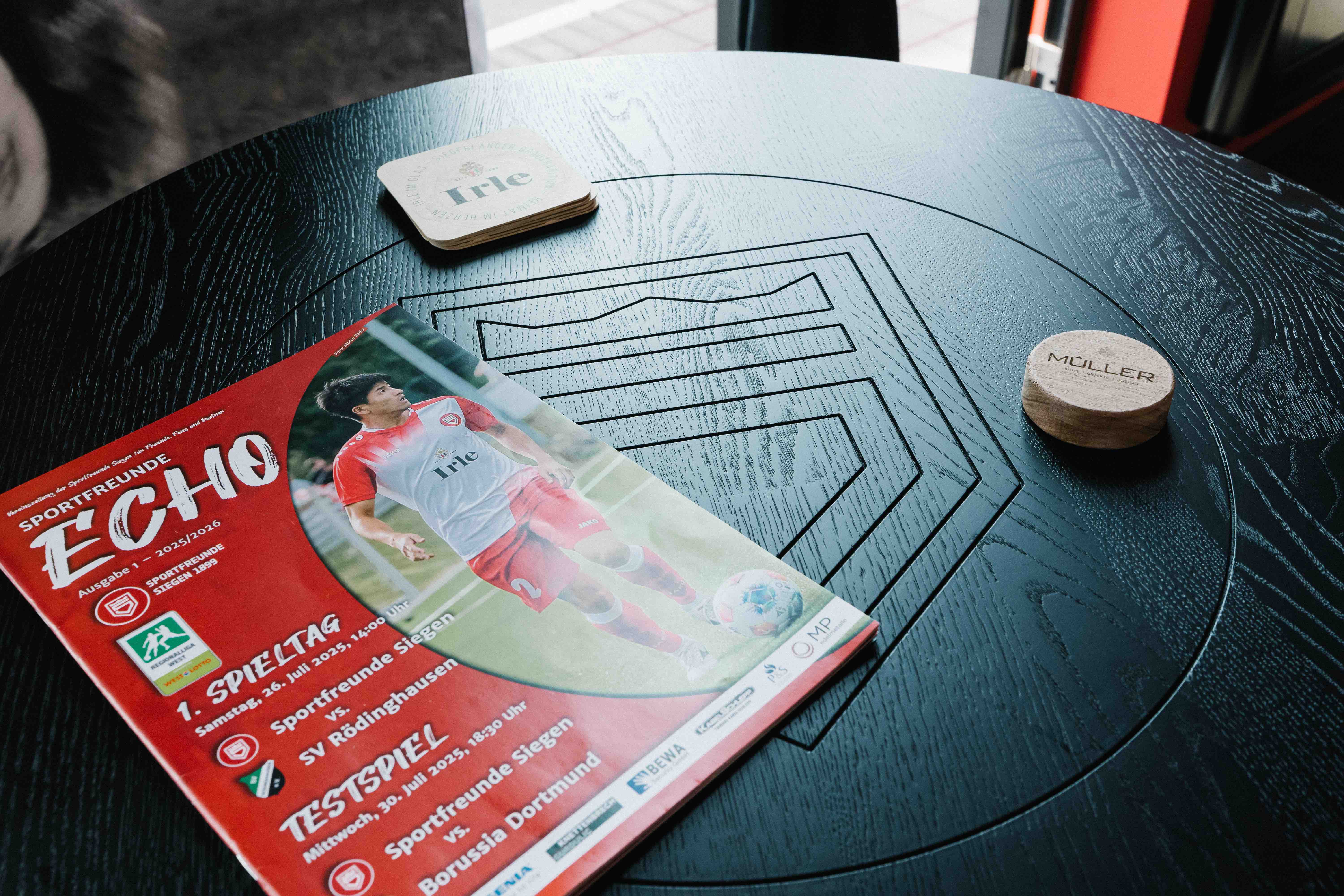 Eine VIP-Lounge für den Fußballverein – das bedeutet: Repräsentation, Flexibilität und technische Raffinesse unter einem Dach. Der Raum sollte genauso gut für Pressekonferenzen wie für festliche Empfänge funktionieren.